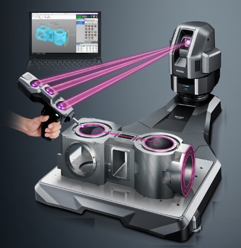 Cette machine 3D est équipée d'une sonde portative guidée par la réalité augmentée, ce qui la rend unique contrairement aux colonnes de mesure 3D et MMT traditionnelles. Facile à utiliser, elle offre une grande souplesse permettant de mesurer tous types de pièces.