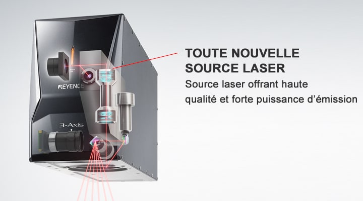 Notre nouvelle source allie les technologies offertes par les lasers YVO4 et fibré. Parfaitement adapté aux marqueurs laser, cet source permet à la série MD-X de combiner les atouts de ces deux types de laser. KEYENCE développe des lasers à semi-conducteur et des lasers fibré depuis de nombreuses années. La source S-MOPA est le fruit de cette grande expérience.