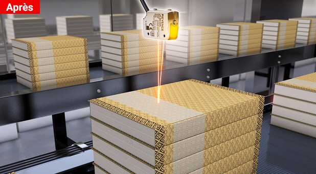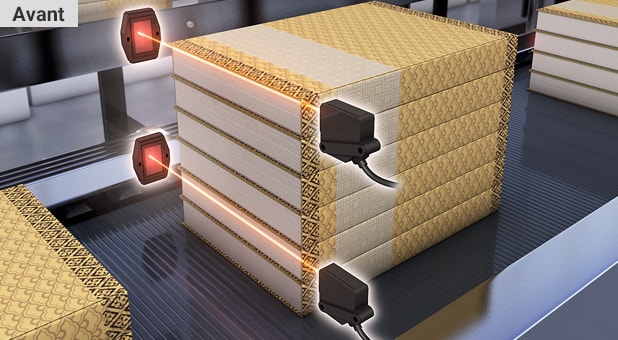 Auparavant, à chaque changement de produits, la confirmation de la quantité nécessitait un réglage manuel des capteurs afin de prendre en compte les différences de hauteur entre les produits.