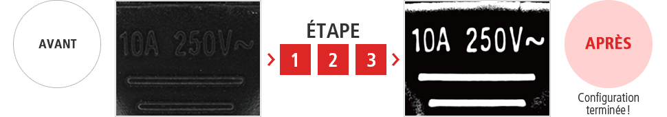 Seuls les caractères embossés sont extraits avec précision, même en l’absence de contraste avec l’arrière-plan.