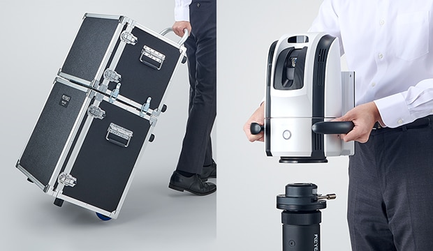 - Grâce à une plage de mesure de 25 m maximum, même les cibles les plus imposantes peuvent être mesurées par un seul opérateur.