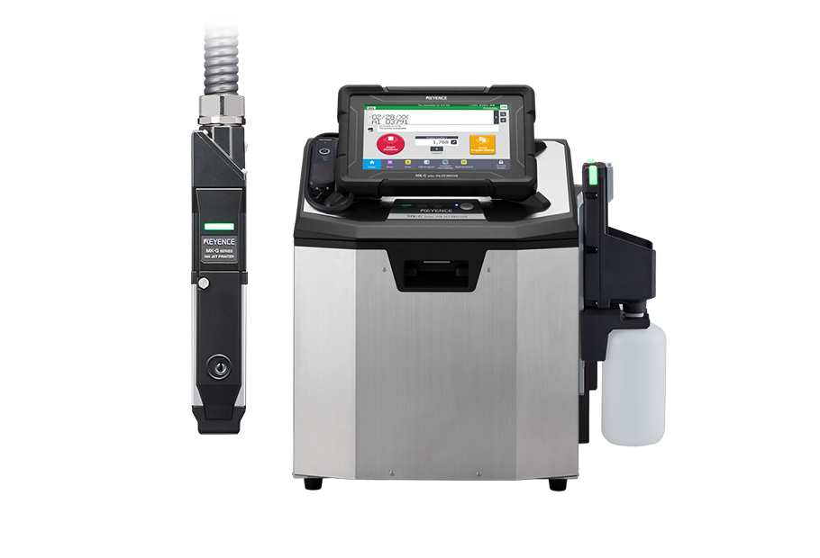 Impression par génération de particules d'encre à travers une buse, particules qui sont ensuite chargées et déviées. Impression stable sur les surfaces irrégulières et les objets mous grâce au procédé sans contact.