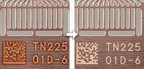 Une caméra intégrée dans la tête du marqueur laser MD-X détecte automatiquement la forme de la cible. Le marqueur peut alors corriger les déviations de position de marquage (X, Y et thêta) en toute circonstance.