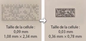 ・Type de marquage / configuration - qu’il s’agisse d’un grand logo ou d’une matrice de petits textes, cela déterminera le champ de vision du marquage.