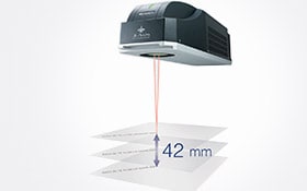 La série ML-Z ajuste la distance focale à la bonne valeur, sur une plage de 42 mm. Inutile de recourir à un dispositif complexe pour ajuster la hauteur de la tête de marquage lors des changements de production.