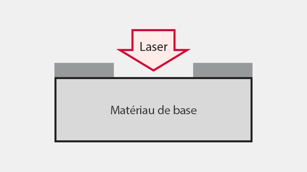 Éliminer la peinture ou un élément imprimé de la surface cible pour obtenir un contraste avec la couleur du matériau de base.