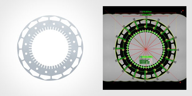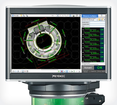 Produisant des images haute définition, le système de mesure dimensionnelle par imagerie Série IM-8000 offre une performance de détection triplée sans sacrifier la convivialité : placez la cible, appuyez sur le bouton et la mesure est lancée ! Un capteur CMOS de 20 mégapixels et un nouvel algorithme garantissent une détection stable des contours, mesurant avec précision jusqu’à 300 cotes en quelques secondes seulement. De plus, le tout nouveau mécanisme de rotation permet de maintenir à l’horizontale des cibles de toutes tailles et formes, pour mesurer plusieurs surfaces de la cible à 360° en une seule opération. Le fonctionnement est plus simple que jamais, il vous suffit d’appuyer sur le bouton MEASURE. Les résultats sont ainsi cohérents quel que soit l’utilisateur et la charge de travail sensiblement allégée. Rapidité, régularité et facilité sont les trois atouts de ce produit pour résoudre de nombreux problèmes de mesure.