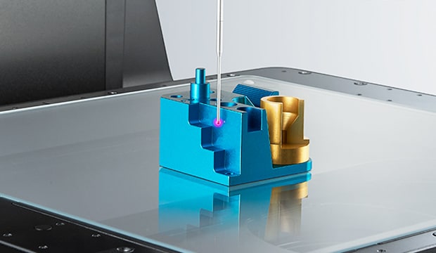 Le laser multicolore intégré mesure instantanément la hauteur du point visé sur la pièce, permettant une mesure précise quel que soit le matériau.