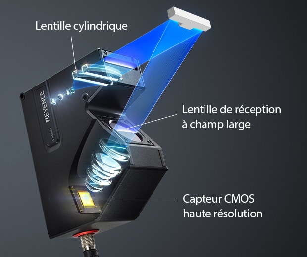 La lumière parallèle est émise grâce à une lentille cylindrique conçue pour empêcher la dispersion de la lumière réfléchie sur la surface de la cible. Ceci garantit des réflexions stables à partir de n'importe quelle forme ou surface.