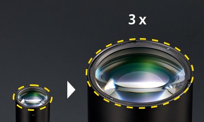 En plus de la conception optique unique, une lentille réceptrice de lumière à champ large couvrant trois fois la zone d’une lentille classique permet d'augmenter la quantité de lumière reçue.