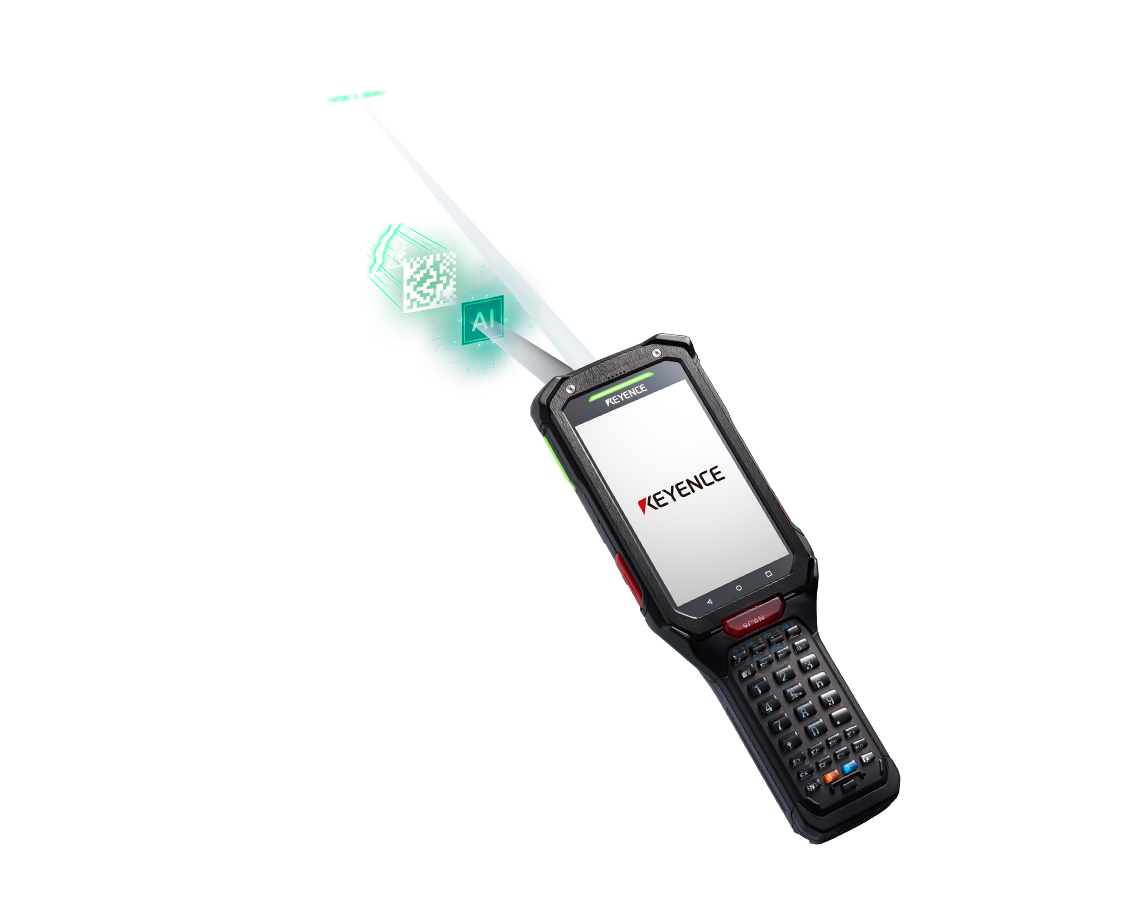 Doté d’un processeur à huit cœurs doublé d’un coeur accélérateur d’IA, le terminal portatif Android™ Série BT-A600 vous permet de profiter de performances de lecture à haute vitesse avec une caméra quadruple gérant de manière flexible les codes proches et éloignés. Les filtres à IA de KEYENCE permettent également une lecture instantanée, même pour les codes difficiles. Équipé d’un grand écran de 4,3 pouces, il possède également un clavier et d’autres accessoires en option, comme une poignée de type pistolet et une gâchette annulaire. Ces options facilitent l’utilisation du produit pour n’importe quelle application. Ce produit inclut diverses fonctionnalités, dont la meilleure durabilité de sa catégorie, une batterie dotée d’une autonomie d’une journée entière et un outil de gestion des appareils qui sauvegarde toutes les données, du démarrage à l’exploitation en passant par la maintenance.
