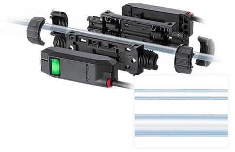 Détectez une grande variété de liquides, des fluides à haute viscosité, susceptibles d’adhérer au tuyau, aux substances alimentaires et produits chimiques, qui ne doivent en aucun cas entrer en contact avec le capteur.