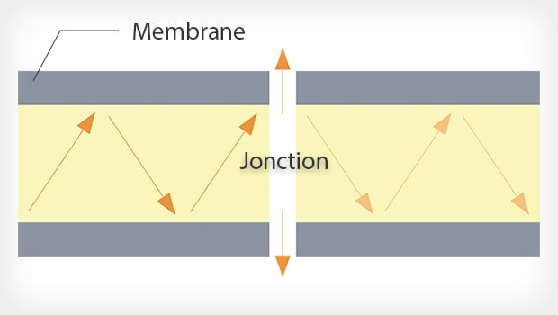 L’intensité lumineuse est atténuée d’environ 90% au niveau de la jonction.