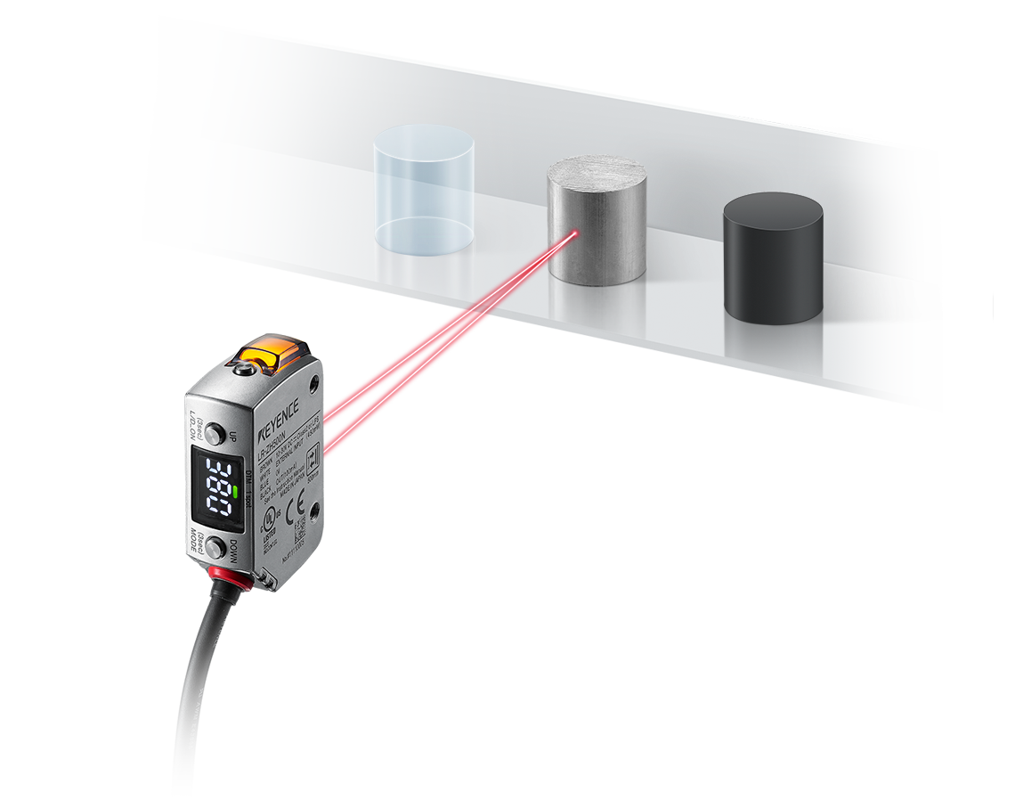 La fonction U.C.D. exclusive de la Série LR-Z permet une détection stable des cibles transparentes, métalliques ou sombres. Offrant également une détection basée uniquement sur la distance, la Série LR-Z détecte toute cible, indépendamment de sa forme, de sa couleur ou de sa finition de surface.