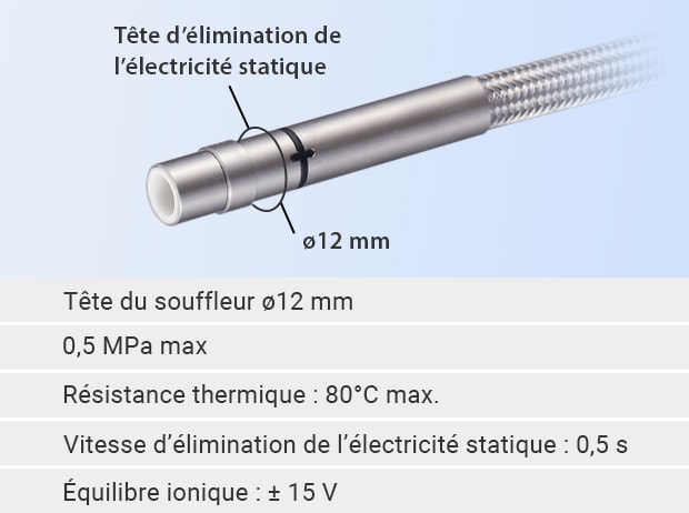 Action antistatique à une distance d’ m ou plus grâce à une tête de 12 mm de diamètre