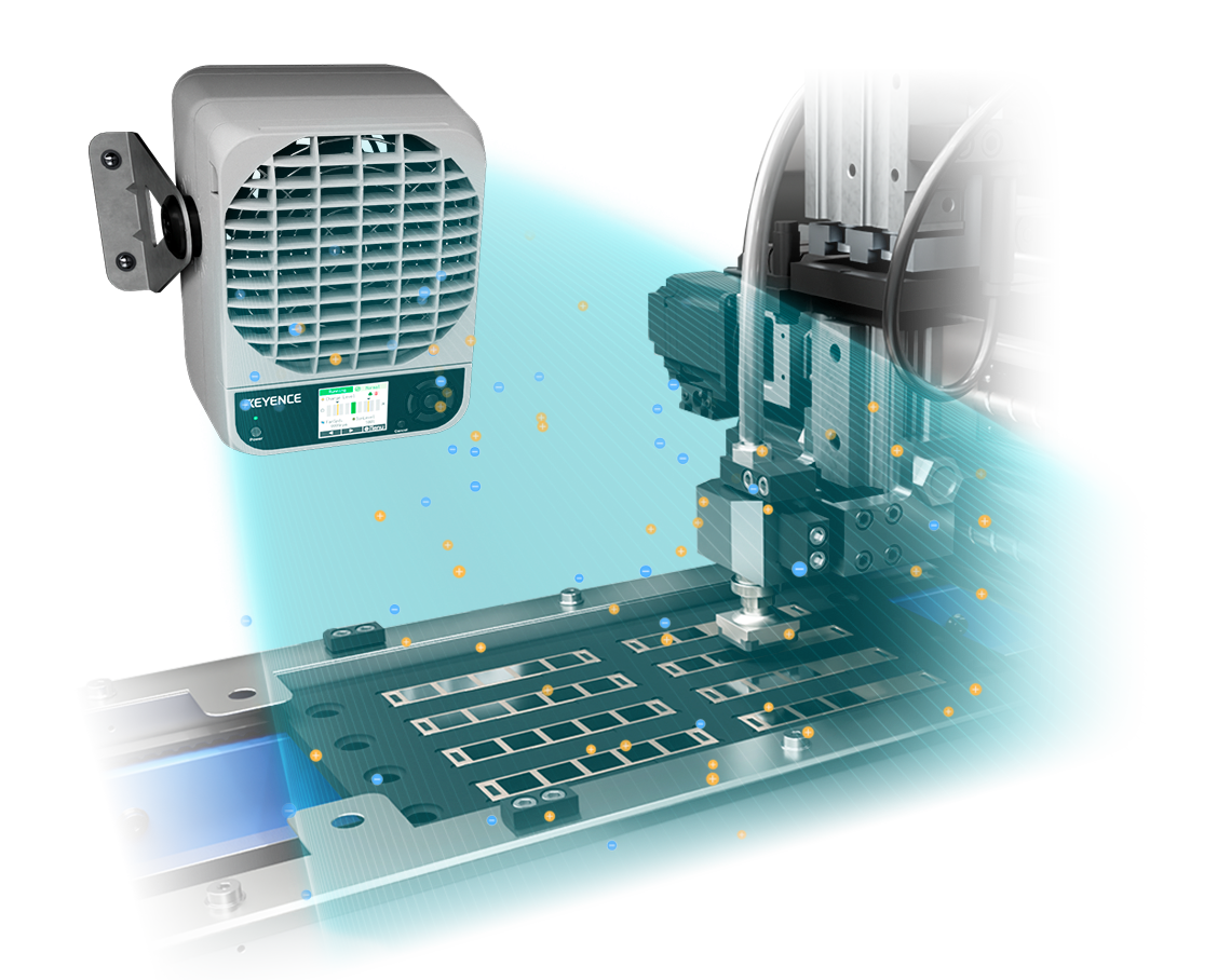 Observez l’élimination de l’électricité statique depuis n’importe quel angle. Vérifiez le fonctionnement sans aucun capteur supplémentaire et réduisez facilement les problèmes générés par l’électricité statique.