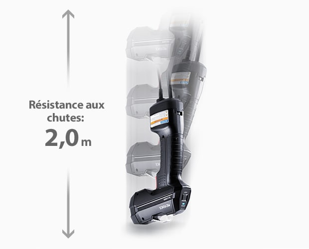Ultra-robuste, le corps du dispositif est entouré d’une protection en caoutchouc capable de supporter des chocs importants. Le pistolet ne casse pas même en cas de chute d’une hauteur de 2,0 m. La conception à longue durée de vie garantit une utilisation en toute confiance même à fréquence élevée.