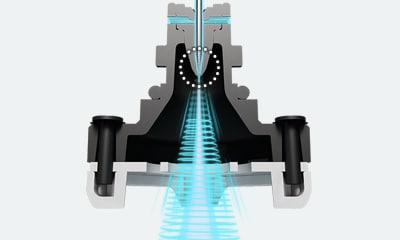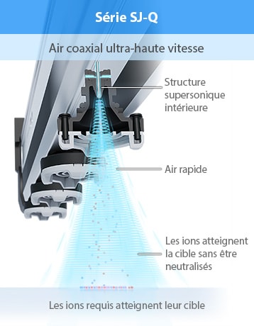 Même en cas de sondes poussiéreuses, une élimination précise de l’électricité statique est assurée. L’air à vitesse supersonique est pulvérisé coaxialement sur l’électrode, créant ainsi une couche enveloppante et repoussant la poussière provenant de l’air extérieur.
