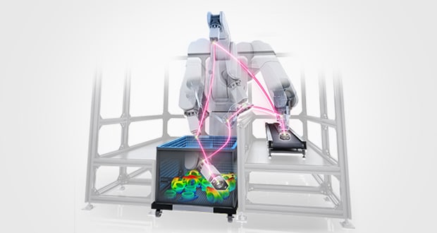 Les systèmes optiques et les algorithmes de recherche 3D développés par KEYENCE offrent des performances haute précision et haute vitesse