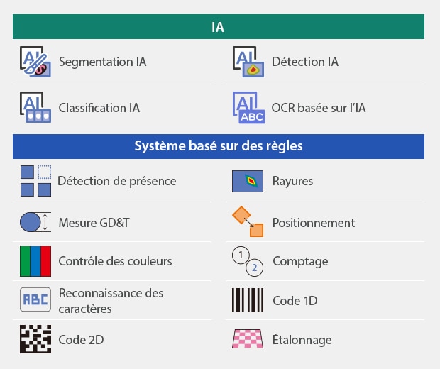 KEYENCE développe en continu des technologies de système de vision exclusives et avancées. Nous proposons une grande diversité de produits pour résoudre la multitude de problèmes rencontrés chaque jour sur les sites de fabrication. Parmi nos références, des caméras intelligentes tout-en-un et des contrôleurs haute vitesse, diverses caméras matricielles et linéaires exploitant notre technologie exclusive et des caméras 3D. De plus, nos outils de contrôle basés sur règles et sur IA peuvent être combinés pour s’adapter à toute situation. KEYENCE vous offre tous les équipements requis pour concevoir votre système de vision, objectifs et filtres compris. Cerise sur le gâteau, notre gamme d’éclairages garantit la création de l’image optimale.