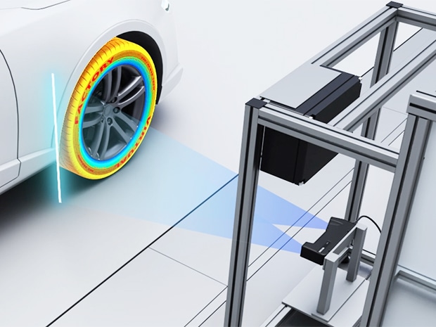 Lors de la vérification des données des pneus et de la carrosserie du véhicule après le montage, avec la Série LJ-X8000, les données de hauteur sont utilisées pour effectuer le contrôle 3D, afin qu’une détection stable soit possible même avec la reconnaissance des caractères de même couleur. C’est également utile pour la traçabilité grâce à la connexion des commandes externes lors de l’exportation.