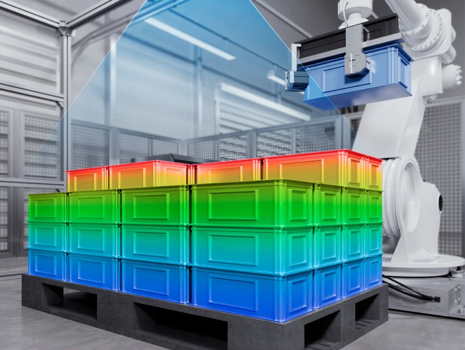 Le projecteur LED intégré supprime toute nécessité de sélectionner un éclairage spécial pour s’adapter au large champ de vision de la caméra. La détection est possible même lorsque les caisses sont proches les unes des autres.