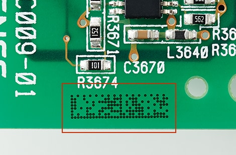 A des fins de traçabilité, il est fréquent que les circuits imprimés en epoxy ou matières souples soit marqués d'un code 2D. La zone d'impression étant limitée, une imprimante à jet d'encre continu à petits caractères est recommandée.