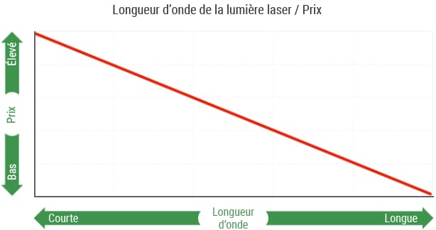 En règle générale, le prix d’un marqueur laser est inversement proportionnel à la longueur d’onde de son faisceau.