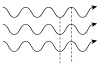 Comme illustré sur les figures ci-dessous, lorsque la lumière traverse un électron avec le même niveau d’énergie, des photons (lumière) supplémentaires de mêmes niveau d’énergie, phase et direction sont créés. Lors de l’émission stimulée, pour chaque photon traversant un électron, deux photons sont émis. Ce phénomène est appelé émission stimulée.