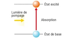 Lorsque des atomes (molécules) absorbent de l'énergie extérieure, ils passent d'un niveau d’énergie bas à un niveau d’énergie plus élevé, appelé « état excité ».