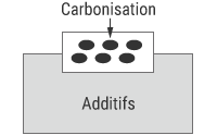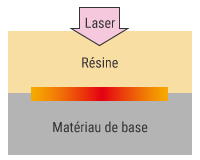 Lorsque le matériau de base absorbe l’énergie du laser, une réaction thermique entraîne l’augmentation de la densité moléculaire. Les molécules sont condensées et la couleur s’assombrit.