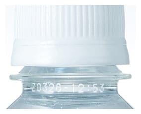 Sur les plastiques PET transparents/translucides, il est possible de réaliser un marquage blanc semblant flotter à la surface. Des bouteilles en PET aux films fins, le marquage est effectué sans percer la surface.