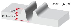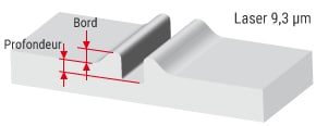 En cas de marquage à forte puissance, la chaleur émise peut percer la cible. L’utilisation d’un laser de courte longueur d’onde (9,3 μm) permet un marquage net avec un endommagement minime.