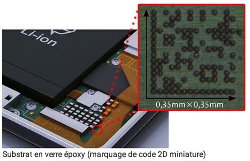 Minuscule marquage de caractères et de codes 2D sur une carte de circuit imprimé