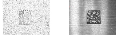 Code 2D marqué sur un matériau métallique présentant une surface brossée ou moulée