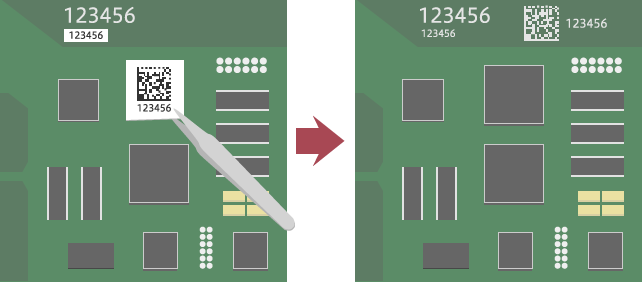 Le marquage direct (DPM), qui permet d’inscrire les numéros de série, numéros de lot et codes 2D directement sur les pièces et produits, a également grandement contribué à l’évolution des systèmes de traçabilité. Sur un site de fabrication de cartes de circuit imprimé, les fausses puces sont devenues un problème majeur. Le marquage direct des pièces a été appliqué en tant que contre-mesure. La combinaison du marquage direct et des codes 2D permet d’inscrire des symboles d’identification même sur des composants trop petits pour y coller une étiquette.
