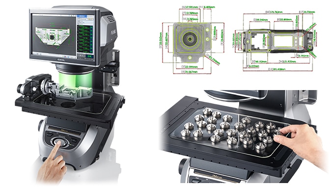 Le système de mesure dimensionnelle par imagerie permet de mesurer les dimensions de cibles complexes en plusieurs points simultanément. Il n’est pas utile de réitérer la mesure et plusieurs cibles peuvent être mesurées en un temps record.
