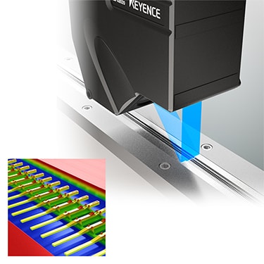 Contrôlez l’inclinaison des éléments après connexion. La Série CL-3000 exploite la méthode confocale polychromatique qui permet une mesure coaxiale. Que la cible soit spéculaire ou rugueuse, elle peut être mesurée dans les mêmes conditions, pour un contrôle facile et précis.