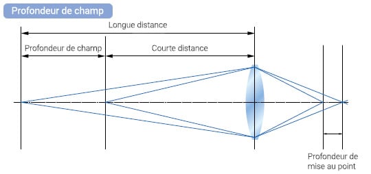 L’image la plus nette d’un objet observé à travers un objectif est obtenue quand l’objet se trouve à la distance focale de l’objectif. Une plage de tolérance permet une légère variation de la distance entre l’objectif et l’objet, sans effet sur la netteté de l’image obtenue. Cette plage est appelée profondeur de champ.