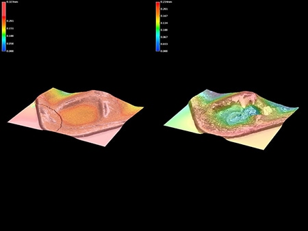 Une observation 3D a démontré que le phénomène étudié était un phénomène d'adhésion et non d’effritement.