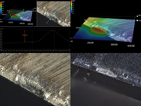 Découvrez ci-dessous les derniers exemples d’observation et d’images d’outils de coupe avec un microscope numérique 4K Série VHX de KEYENCE.