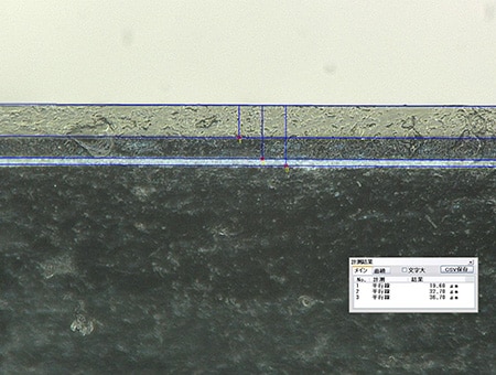 L’épaisseur de peinture, auparavant impossible à mesurer en raison de difficultés de mise au point, est à présent observée avec précision par capture de l’état réel du revêtement.