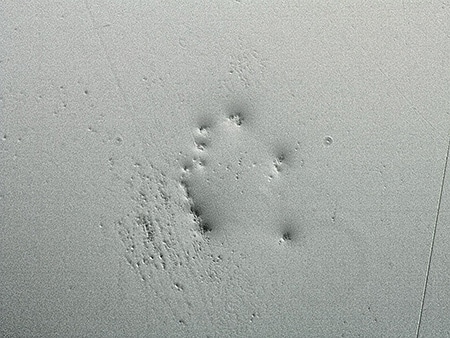La présence de corps étrangers à l’intérieur du matériau de revêtement est confirmée.