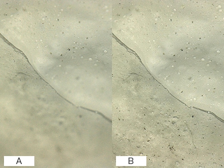 Les fonctions de contraste interférentiel différentiel (DIC) et HDR permettent de visualiser les irrégularités d’application.