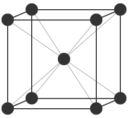 Le fer à température ambiante suit une structure lamellaire cubique centrée où les atomes sont situés dans chaque coin et au centre du cube.