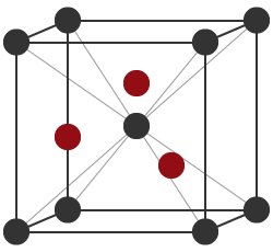 Après la trempe, la structure lamellaire devient cubique à faces centrées et les atomes sont alors situés dans chaque coin et au centre des faces du cube. Dans cette structure, le carbone devient soluble.