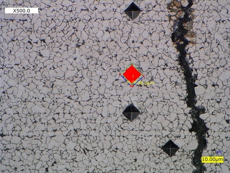 Observation et mesure de métal usiné par traitement thermique au microscope numérique