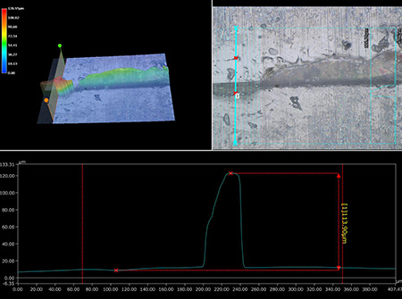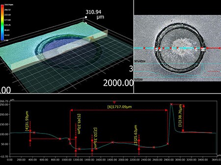 Le microscope numérique 4K Série VHX mesure avec une précision submicronique la forme 3D et le profil des zones défectueuses à partir de l’observation sur images haute définition.