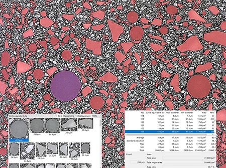 Le microscope numérique 4K Série VHX permet d’observer la dispersion de la charge à partir d’images haute définition 4K sous fort grossissement. Ces images peuvent également être exploitées pour exécuter un comptage et une mesure automatiques de surface haute précision, garantissant une évaluation quantitative intuitive associant observation et mesure.
