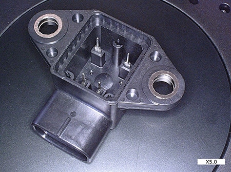 À l’exception des moulages multicolores, les produits moulés par injection sont généralement d’une seule couleur et présentent ainsi un faible contraste, qui ne facilite pas l’observation des défauts de surface. Il est notamment difficile de déterminer les conditions d’éclairage optimales pour l’observation des lignes de soudure, ces rainures ou motifs formé(e)s par une fusion insuffisante à la jonction entre les écoulements de plastique fondu dans le moule.